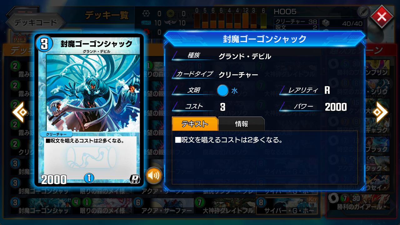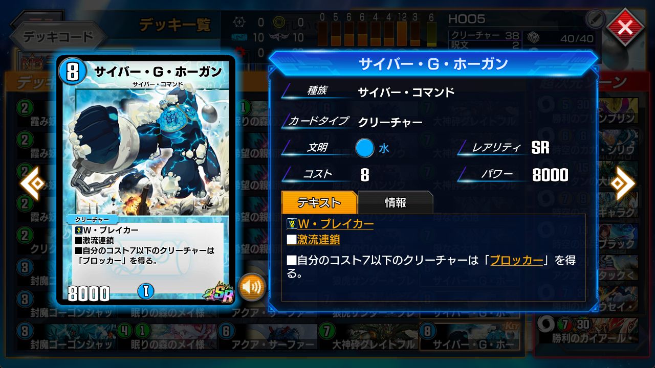 今回選んだのは黒。一番の理由は、《腐毒の幻ハンゾウ》を使えるから。 トリガークリーチャーは出るだけで強いので、そのぶん防御の効果は弱く設定される定めである。 そんな中、場には残らないものの-6000という破格の出力を持つ《ハンゾウ》は、《ホーガン》のようなフルクリデッキにとってまさに適任だ。 【リキピ】の《ジャバジャック》《ヴィルヴィスヴィード》《スーパーパラディン》は全て6000だし、《パンツァー》《四つ牙》《昇龍》のようなメジャーどころのサイキックも6000。 スタン落ち間際にして、いい仕事ができる環境である。
