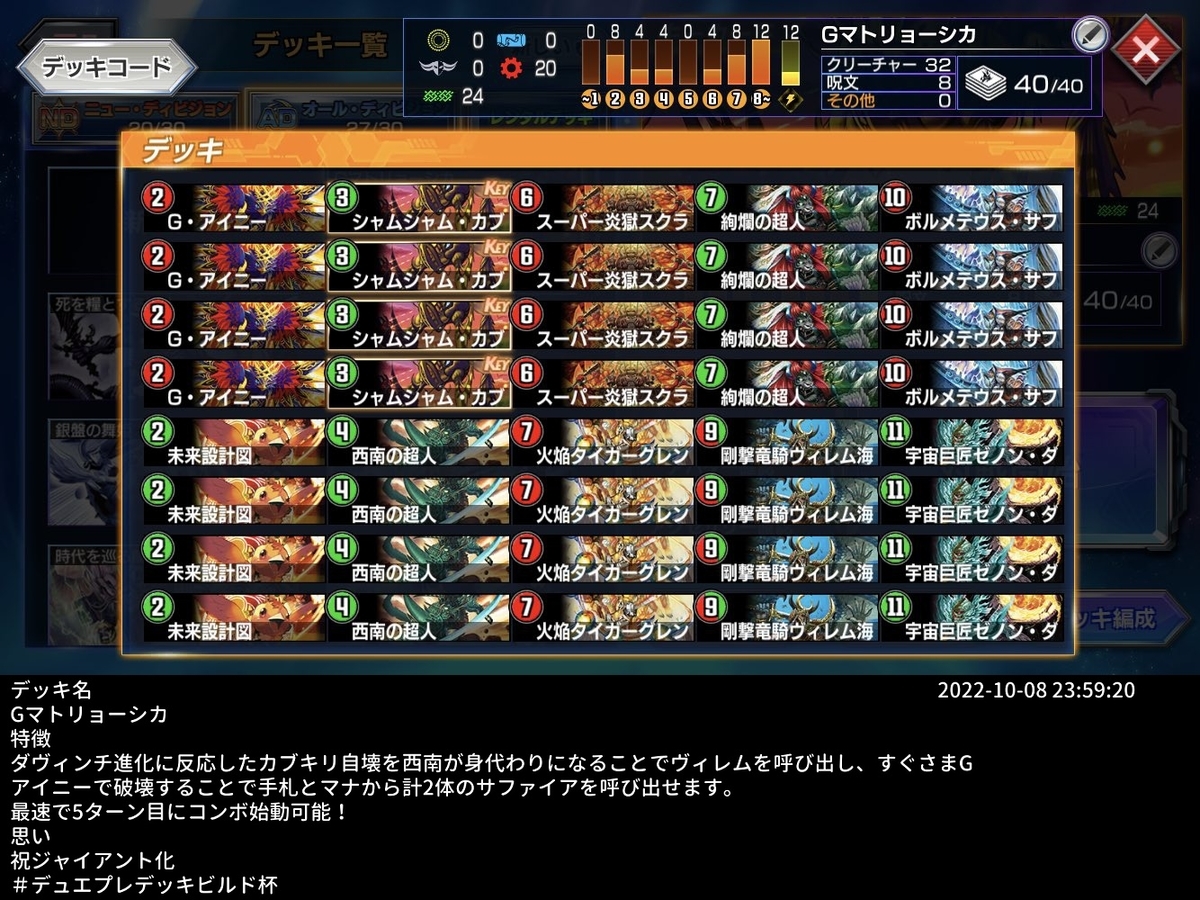 ※ デュエプレサイキックの記事を書いたら燃え尽きてしまった。 ビルド杯記事を楽しみにしてくれていた方には申し訳ない。 後から傾向を見直したくなったときのため、簡単にメモをしておく。
