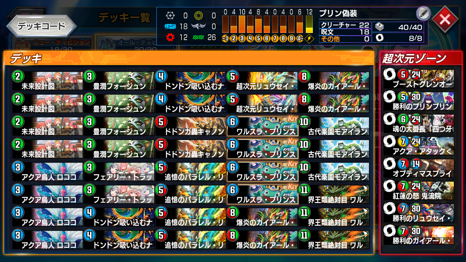 《マグナリア》のおかげでかなり回しやすい。 《ズンドコ》は《ミランダ》のコスト分割払いのために入れているが、マナブーストで《蒼炎》が在庫切れになる可能性があるのが悩ましい。