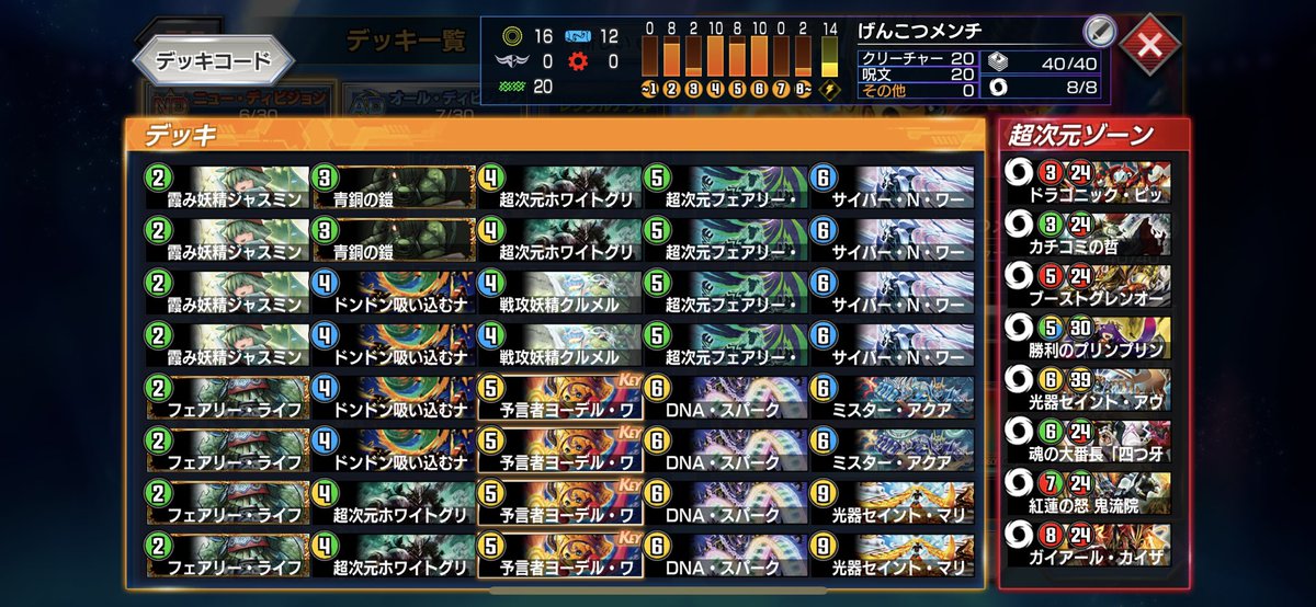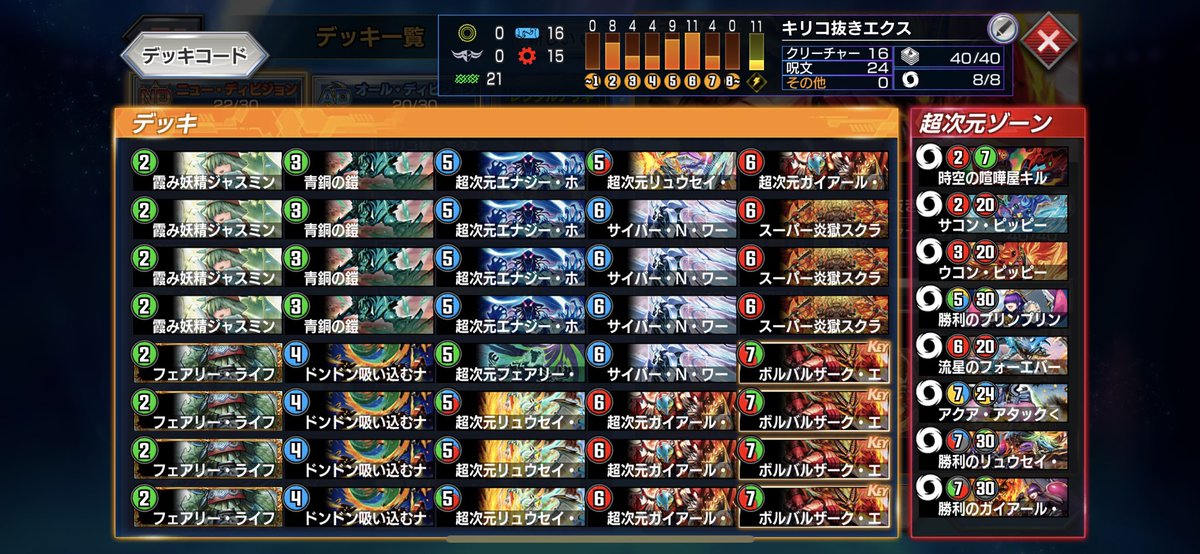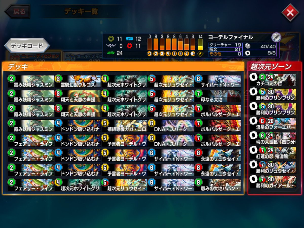 これだけ書くとまた3強時代に戻るのかと思いきや、実際は全く逆。 ND最大勢力の【白Nエクス】参戦を筆頭に、様々なデッキタイプが活躍している。 ただし《リュウホ》の盤面処理能力が高いため、 【メカオー】【ツヴァイ】【アポロリペア】といった展開系のデッキは苦境に立たされている様子。